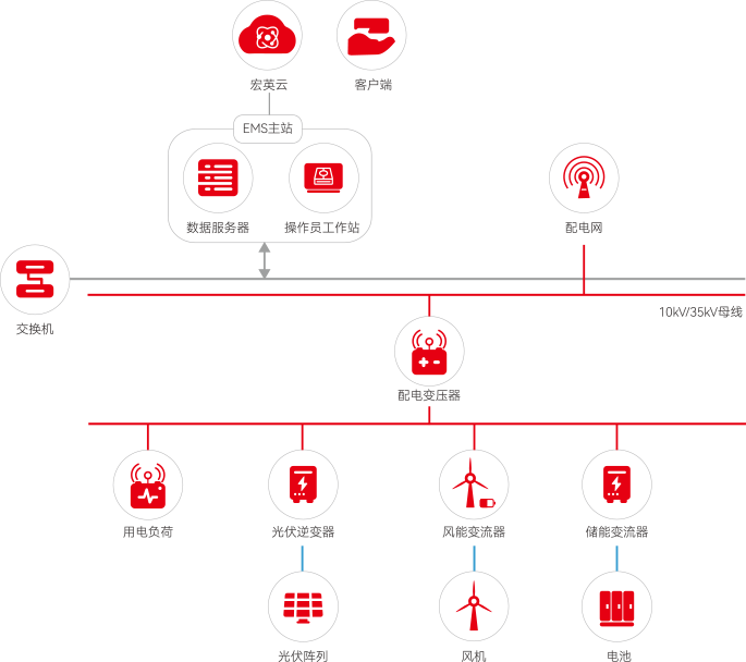 必一運動風光儲一體化解決方案是融合物聯網技術,將風能、太陽能、儲能以及EMS能源管理系統結合起來,實現風、光、儲多能互補協同運行,能源精準調配減少棄風棄光,提高能源綜合效率,同時通過調峰、調頻和調相等功能,有效抑制電網波動,提升電網穩定性、可靠性。